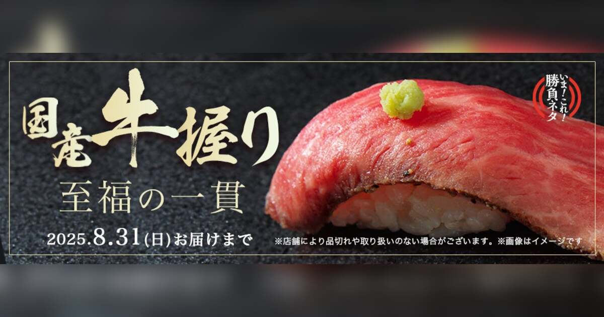 株式会社ライドオンエクスプレスホールディングス(本社:東京都港区、代表取締役社長:江見 朗)は、グループ企業である株式会社ライドオンエクスプレスが展開する、宅配寿司「銀のさら」(以下、「銀のさら」)において、旬の食材や希少なネタなどを公式WEBサイトでのみ期間限定で販売する「いま!これ!勝負ネタ」として2025年6月16日(月)~8月31日(日)まで、『国産牛握り』を数量限定で販売いたします。(数量が無くなり次第、期間中であっても販売は終了となります。)