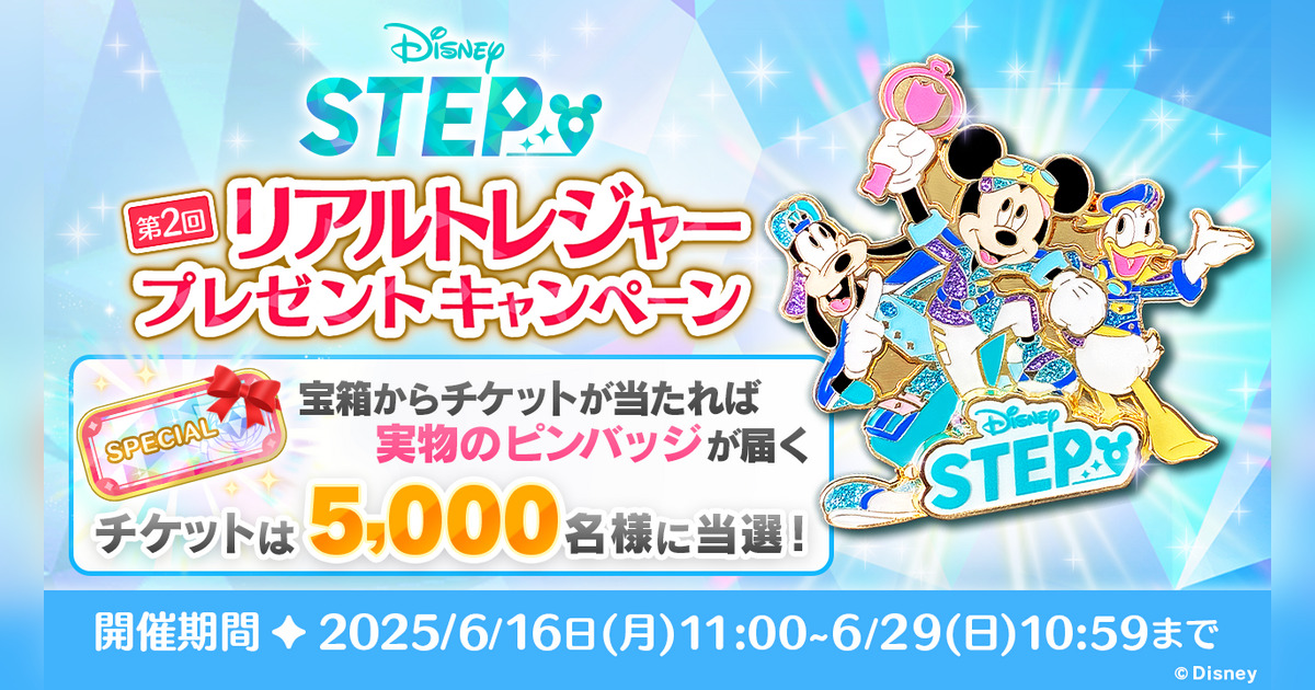 株式会社ドリコム(本社:東京都品川区、代表取締役社長:内藤裕紀、以下ドリコム)は、ウォルト・ディズニー・ジャパン株式会社(東京都港区)協力のもと提供するディズニーのお散歩アプリ『Disney STEP(ディズニー ステップ)』において、2025年6月16日(月)11:00より、第2回「リアルトレジャープレゼントキャンペーン」を実施することをお知らせいたします。
