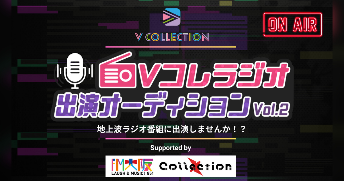 「クリエイティビティ×テクノロジー」でIP開発を行う株式会社CHET Group(本社:東京都品川区、代表取締役CEO:小池祐輔)は、運営するFM大阪で放送中のラジオ番組「Collection」の一部である「V Collection」コーナーへの出演権をかけたオーディションの募集を開始しました。