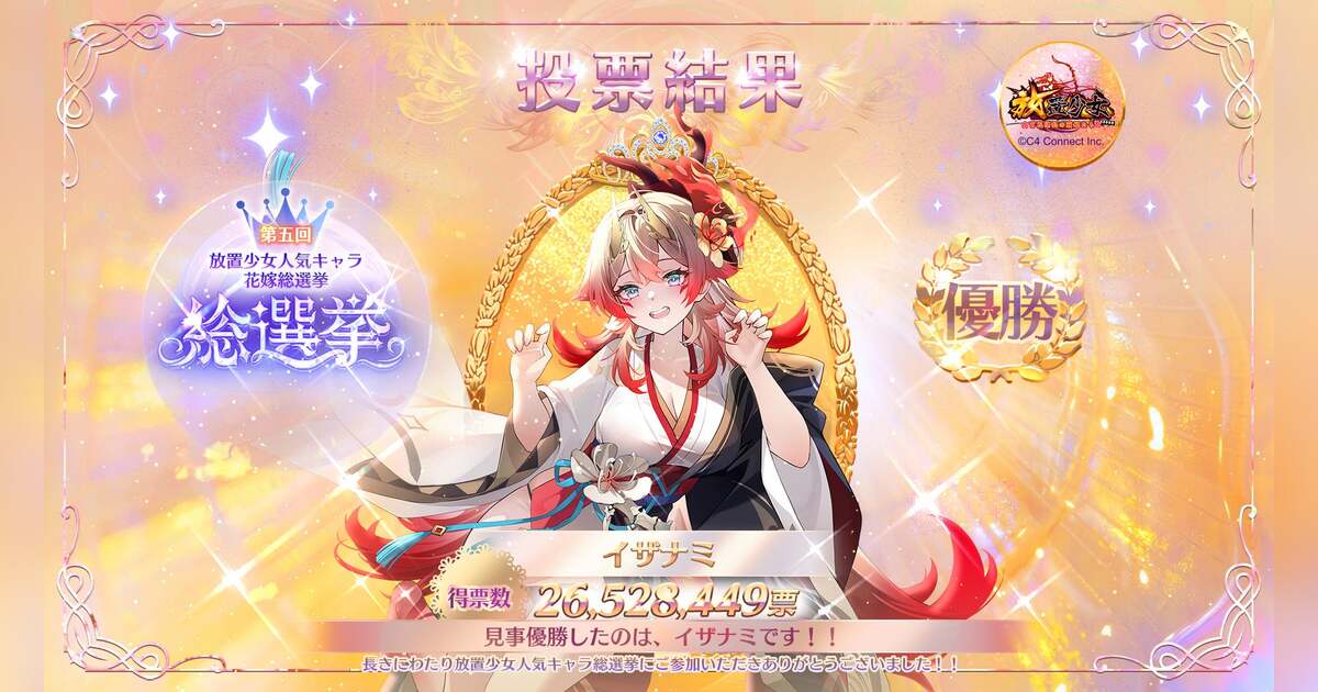 377名の少女の中から見事、優勝の栄冠に輝いたのは 『イザナミ』(26,528,449票)です。