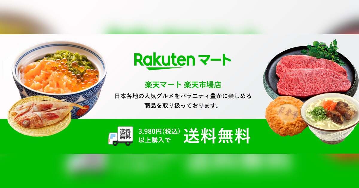 概要: 「楽天マート」が「楽天市場」に出店する日本各地のグルメを販売する店舗です。肉類、魚介類、スイーツなど厳選した「楽天マート」で人気の商品を販売します。