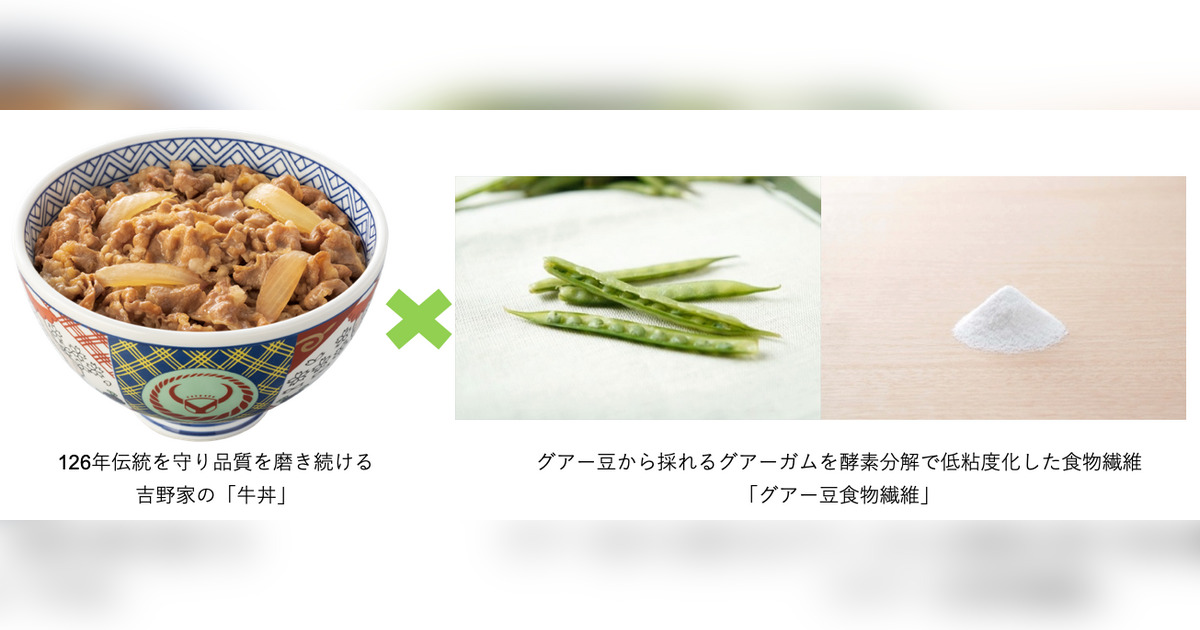2024年9月、吉野家の「牛丼」を食べる際にグアー豆食物繊維を同時に摂取する事により、GIPやGLP-1などといった消化管ホルモン(インクレチン)やL-オルニチンやL-リジン、サルコシンといった血中アミノ酸濃度が増加、食欲ホルモンであるグレリンを抑制することを報告し、特許出願も行ってきました。