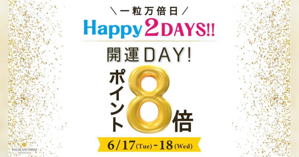 マルラニハワイオンラインショップにて、通常 8のつく日に実施している「ポイント8倍キャンペーン」を、今回は特別に【6月17日・18日】の2日間限定で開催いたします!