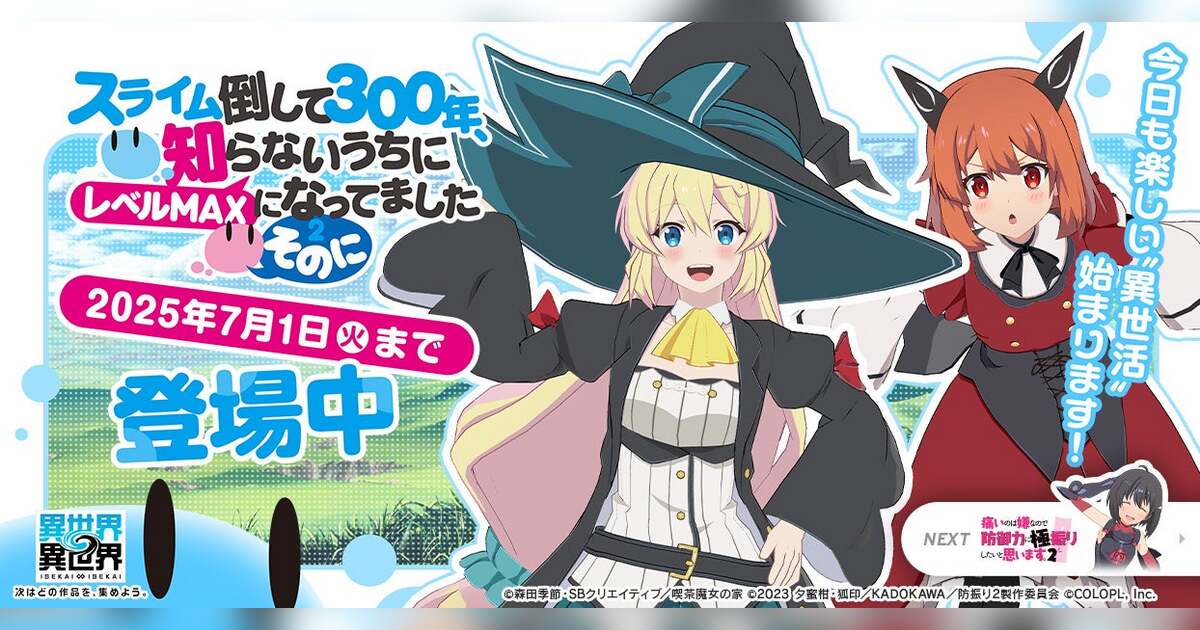 株式会社コロプラ(代表取締役社長 上席執行役員 CEO:宮本貴志、本社:東京都港区、以下「コロプラ」)は、スマートフォン&PCでもっと異世界を楽しむゲーム『異世界∞異世界』(いせかいいせかい)にて、本日2025年6月16日(月)より人気アニメ作品「スライム倒して300年、知らないうちにレベルMAXになってました 〜そのに〜」(以下、「スライム倒して300年」)とキャラクターたちが登場していることをお知らせいたします。
