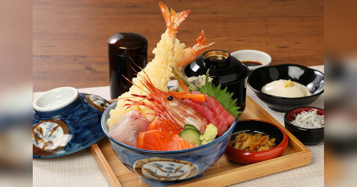 大阪木津市場から仕入れた食材等を天ぷらに仕立て、少量多品目を楽しめる「天丼メニュー」と「定食メニュー」をご用意。バラエティ豊かな風味と食感の天ぷらを、ご飯と共にお召し上がりいただけます。