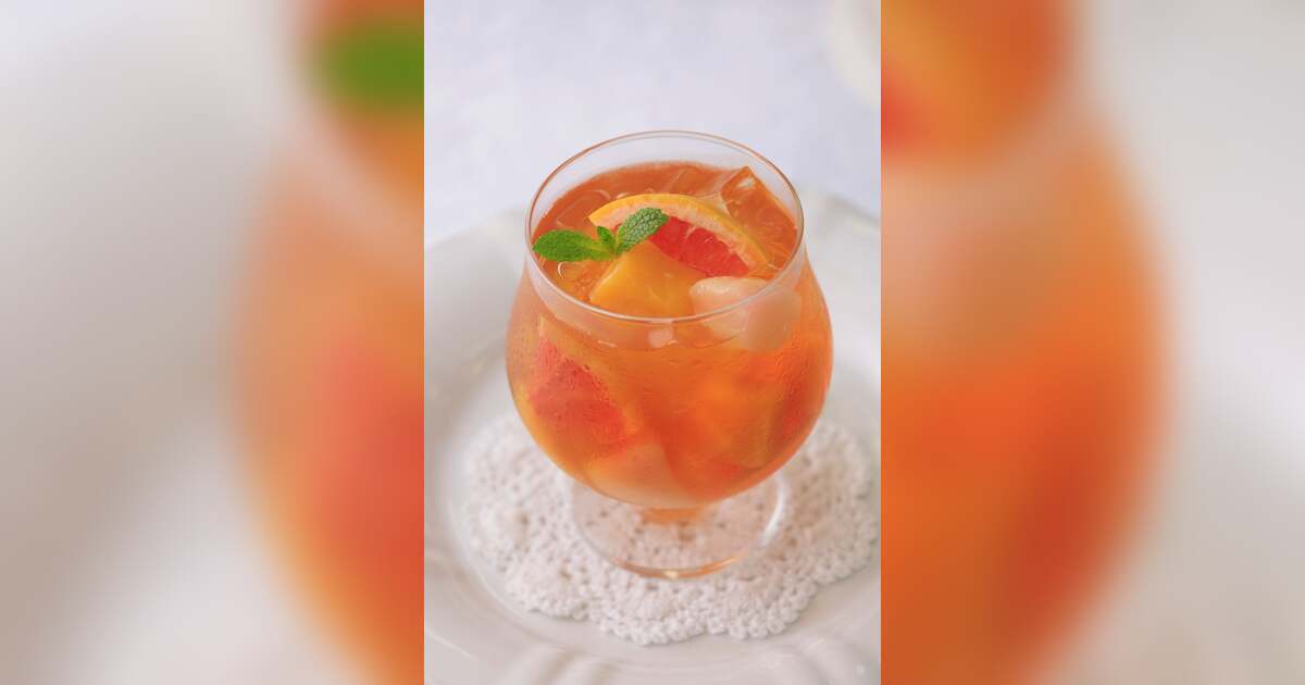 「ピーチ&ローズヒップ」の紅茶をベースにした、甘く優しい桃の香りが特長のフレーバーティーに、大粒の白桃、フルーティーなマンゴー、そして彩り豊かなルビーグレープフルーツを加えました。自家製ティーシロップを加えることで、すっきり爽やかな味わいに。ごろっとした果実の食感と、相性の良いフルーツのハーモニーが楽しめる、夏にぴったりの香り高いフルーツティーをぜひお試しください。