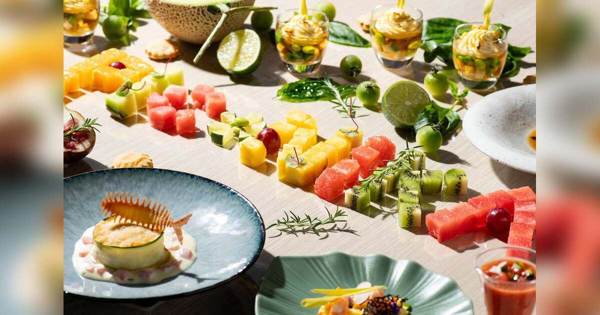 “温故知新”を信条とする料理長・宮本英幸が、この夏届ける新たな季節の一皿。古き良き技と現代的な感性を融合させ、果実と夏野菜の魅力を最大限に引き出しました。今回のテーマは「夏の果実と陽射し」。果実の甘さ・酸味・みずみずしさを前面に、夏の太陽のような明るさとエネルギーを感じられる料理やドリンクをご用意しました。大阪産(もん)食材とのマリアージュや、フルーツと野菜の爽やかな出会いを、五感でお楽しみください。