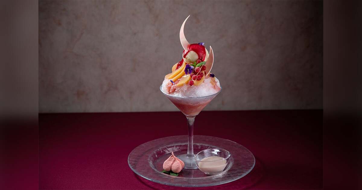 今年は、ランチ・ティータイムはもちろん、ディナーの食後にもお楽しみいただきたいという想いから、”大人・贅沢“をテーマにした「桃のかき氷」をご用意しました。