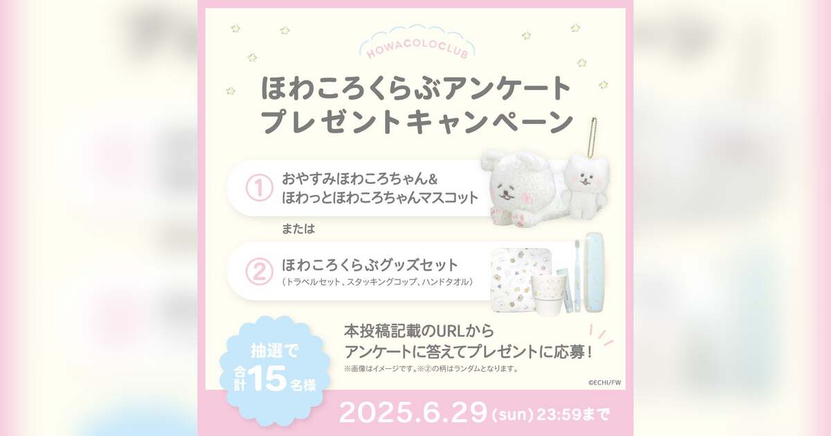 「ほわころちゃんぬいぐるみ」や「ほわころくらぶグッズ」が抽選で15名様に当たるキャンペーンは2025年6月29日(日)まで!