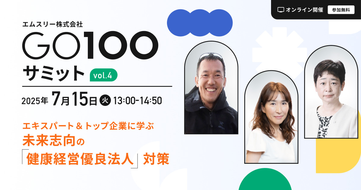 GO100サミット vol.4 ~ エキスパート&トップ企業に学ぶ未来志向の「健康経営優良法人」対策~ |