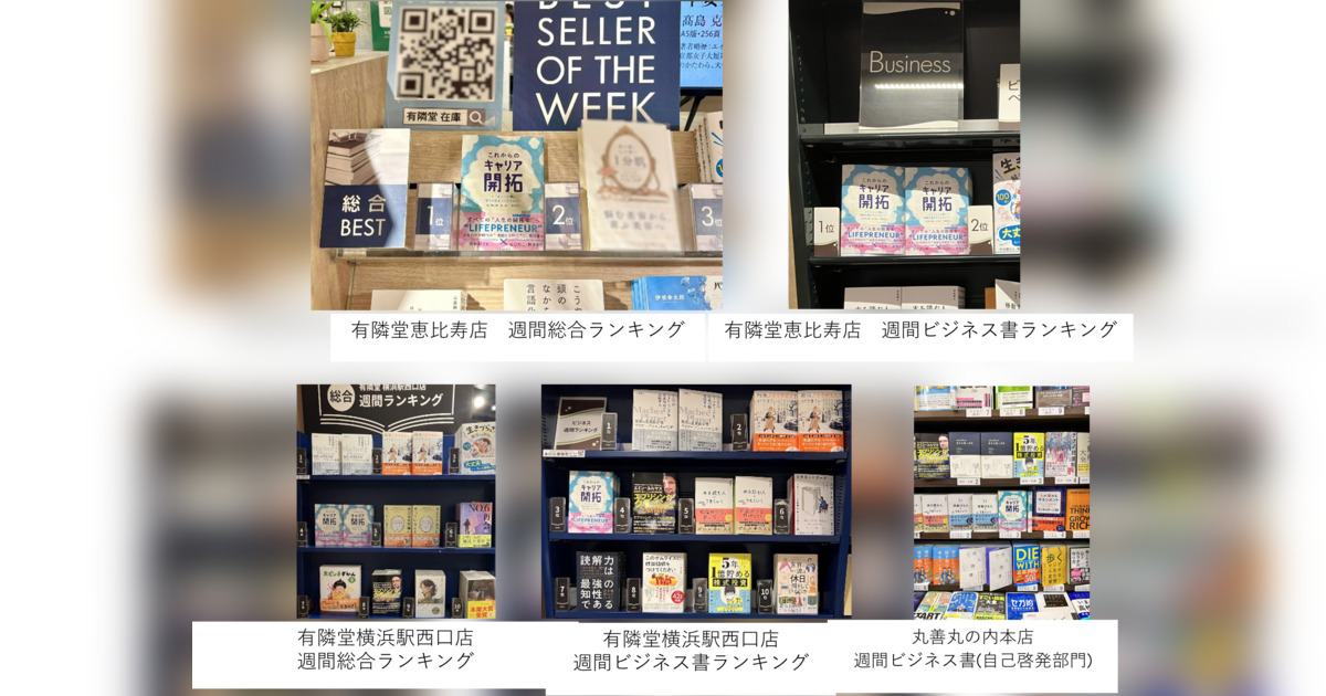 ニューホライズンコレクティブ合同会社(東京都 代表:山口裕二・野澤友宏、以下NH)は、プロティアン・キャリアを提唱する法政大学キャリアデザイン学部教授/一般社団法人 プロティアン・キャリア協会 代表理事の田中研之輔氏とNHの山口裕二と野澤友宏の3名共同で、出版した書籍「これからのキャリア開拓―ミドルシニア期に価値を創るライフプレナー」が、有隣堂恵比寿店で週間総合ランキング/週間ビジネス書ランキングの2部門(集計期間:6月1日~6月7日)で1位を獲得したことをお知らせします。さらに、丸善丸の内本店では自己啓発部門(集計期間:5月29日~6月4日)で3位、有隣堂横浜西口店では週間総合ランキング(集計期間:5月25日~5月31日)で4位、週間ビジネス書ランキング(集計期間:5月25日~5月31日)で3位を獲得しました。読者からは、「「理論×実践」が一冊にまとまっていて腹落ちしやすかった」、「人生の後半戦を見据えて少しでも前進したい、すべての人に薦めたい」など、好評をいただいています。