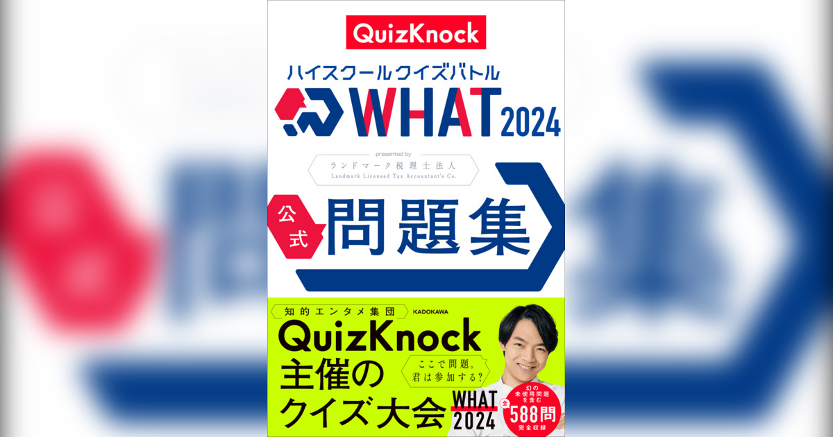 株式会社KADOKAWA(本社:東京都千代田区、取締役 代表執行役社長 CEO:夏野剛)は、2025年6月18日(水)に、『ハイスクールクイズバトル WHAT 2024 公式問題集』(著者:QuizKnock)を発売いたします。
