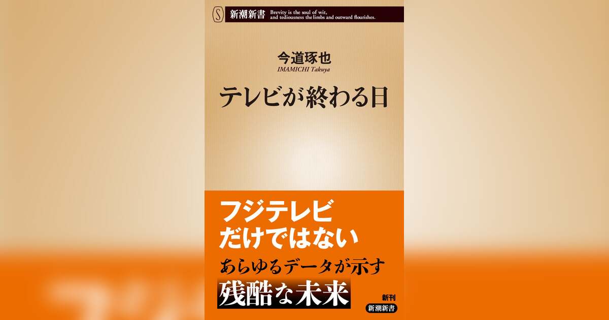 かつてテレビは「メディアの覇者」と言われ、多くのメディアの中でも最も大きな影響力を持っていましたが、オワコン(終わったコンテンツ)と言われるようなってからもかなりの年月が経ちます。NHKで15年間アナウンサーを務めた経歴を持つ著者の今道琢也さんは、様々なデータを突き合わせて、テレビが実際にどのくらい見られなくなっているか、現在の唖然とする実情を明らかにし、今後、テレビが生き残っていけるかどうかを、あらゆる角度から分析します。テレビに未来はあるのか? 新潮新書『テレビが終わる日』(今道琢也著)は6月18日の発売です!