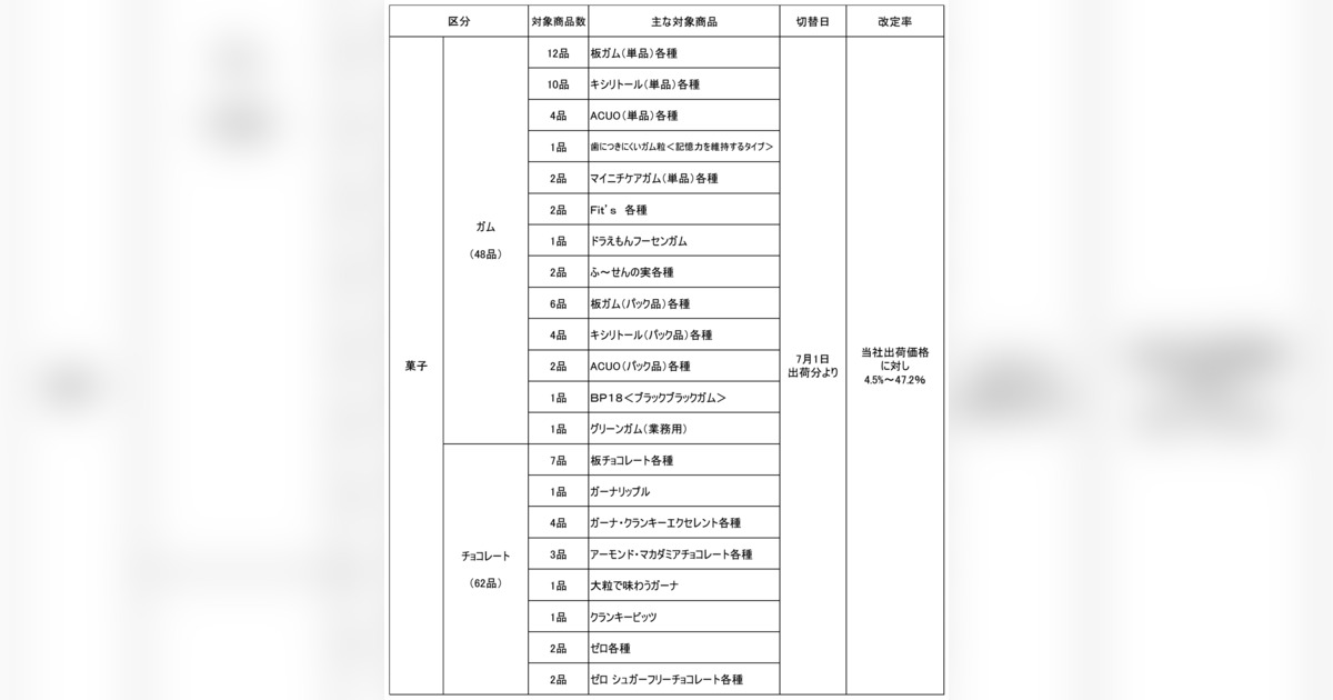 株式会社ロッテ(東京都新宿区、代表取締役社長執行役員:中島英樹)は、菓子商品とアイスクリーム商品の価格改定を実施いたしますのでお知らせします。