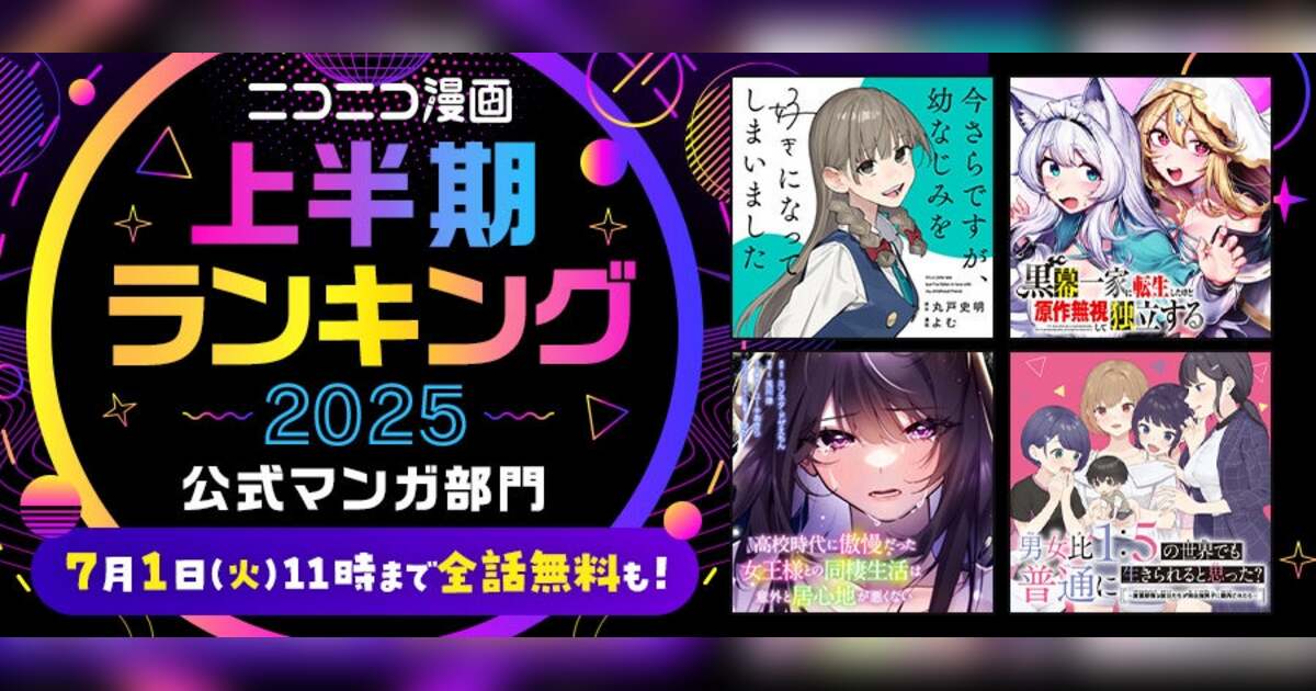 株式会社ドワンゴは、日本最大級のWEBマンガサービス「ニコニコ漫画」の2025年上半期ランキングTOP25を発表します。