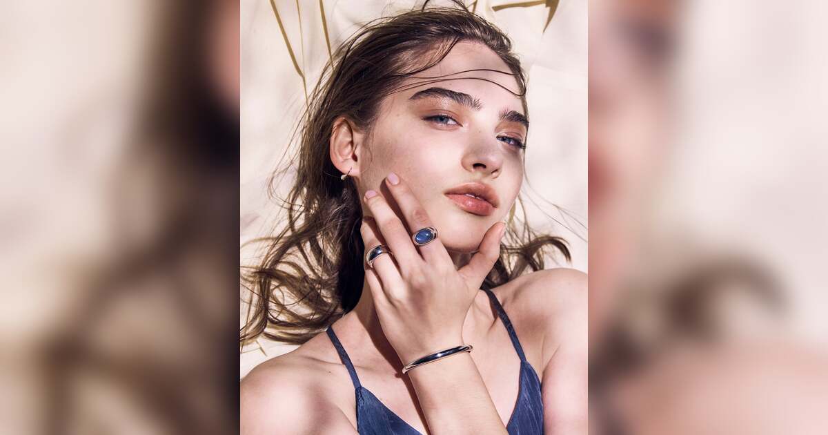 しずくが水面にこぼれ落ちて現れる波紋の一瞬の美を再現したアームに神秘的なブラックラブラドライトをあしらったリングや、ふっくらと丸く丁寧に磨き上げられたシルバーリング・バングルがラインナップ。