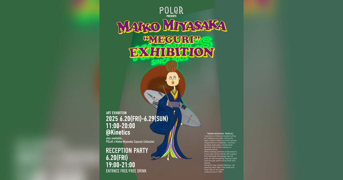 この度、ストリートカルチャーを牽引し続けているショップ“Kinetics(キネティクス)” は、独自の世界観でアートを描くプロサーファー/アーティスト「Maiko Miyasaka」のアートエキシビジョンを新感覚のアウトドアブランド「POLeR」のサポートの元、【POLER PRESENTS Maiko Miyasaka “MEGURI” EXHIBITION】を、6月20日(金) – 6月29日(日)の期間、原宿のKineticsにて開催。