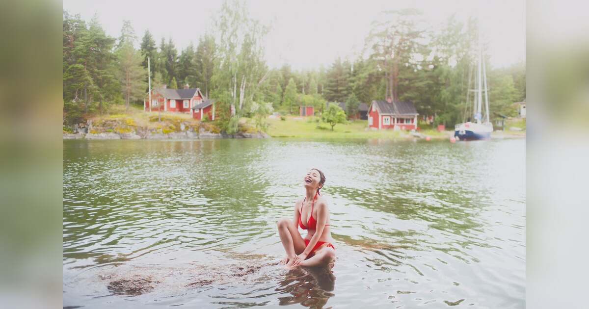 フィンランドの海に岩場から何度も飛び込みました! 地元の方も一緒に泳いでくださり、和気あいあいとした雰囲気で撮影しました!リラックスした顔で笑っていてお気に入りの一枚です。