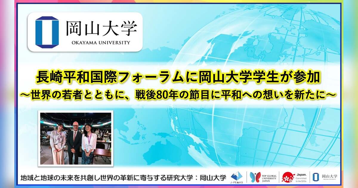 国立大学法人岡山大学(本部:岡山市北区、学長:那須保友)は、2025年5月16~18日に長崎県で開催された国際フォーラム「Nagasaki Peace-Preneur Forum powered by One Young World 2025」に、本学から田中聖愛さん(教育学部3年)、Chok Jia Xuanさん(グローバル・ディスカバリー・プログラム(GDP)4年)が参加しました。