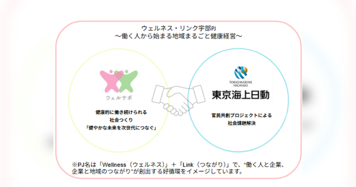 東京海上日動火災保険株式会社山口支店は山口県の抱える人手不足・人材不足という社会課題の解決に取り組んでいます。この度その一環として、ウェルネスサポート様と共に「ウェルネス・リンク宇部プロジェクト」をスタートすることとなりました。このプロジェクトを通じて、健康課題の見える化と持続可能な働きやすい職場づくりを支援し、地域全体の発展にも貢献します。
