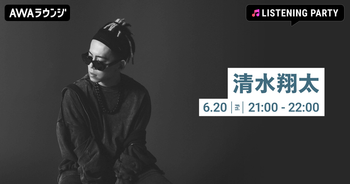 AWA株式会社(本社:東京都港区、代表取締役CEO:冨樫晃己)が運営する、サブスクリプション型(定額制)音楽ストリーミングサービス「AWA(アワ)」は、2025年6月20日(金) 21:00~22:00の1時間に渡り、無料で誰でも参加できるオンライン空間「AWAラウンジ」で、清水翔太を特集したリスニングパーティーを開催いたします。