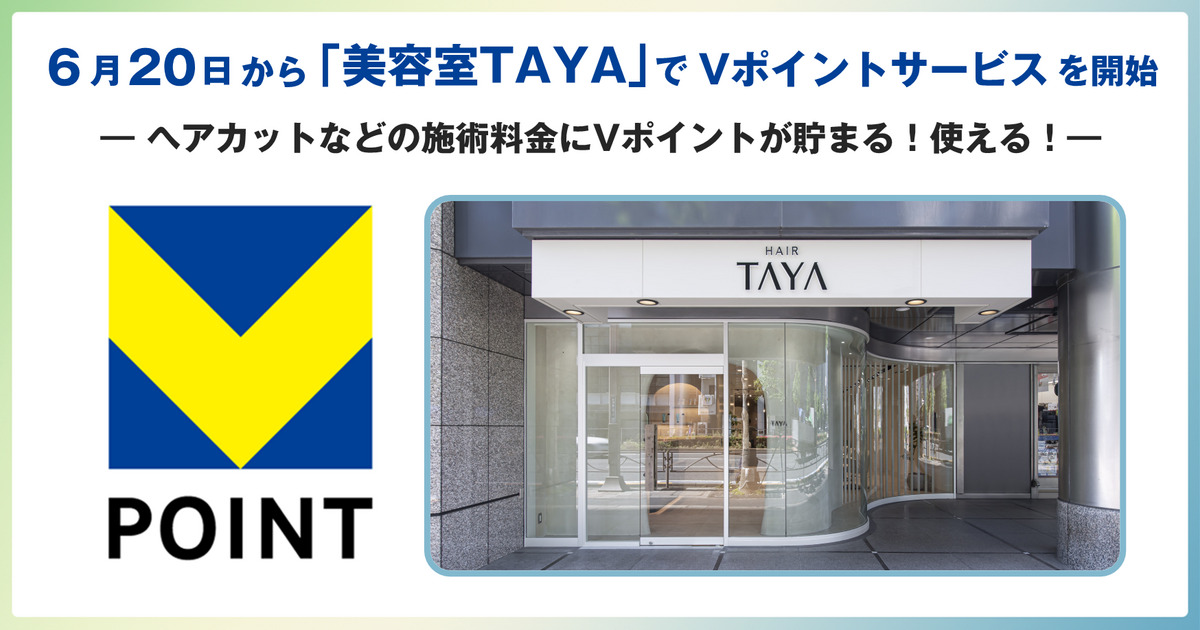 株式会社田谷(本社:東京都渋谷区、代表取締役社長:中村 隆昌、以下「田谷」)とCCCMKホールディングス株式会社(本社:神奈川県横浜市、代表取締役社長 兼 CEO:髙橋 誉則、以下「CCCMKHD」)、三井住友カード株式会社(本社:東京都江東区、代表取締役 社長執行役員 CEO:大西 幸彦、以下「三井住友カード」)は、2025年6月20日(金)より、田谷が運営する全国の「美容室TAYA」でVポイントが貯まって使えるサービスを開始いたします。