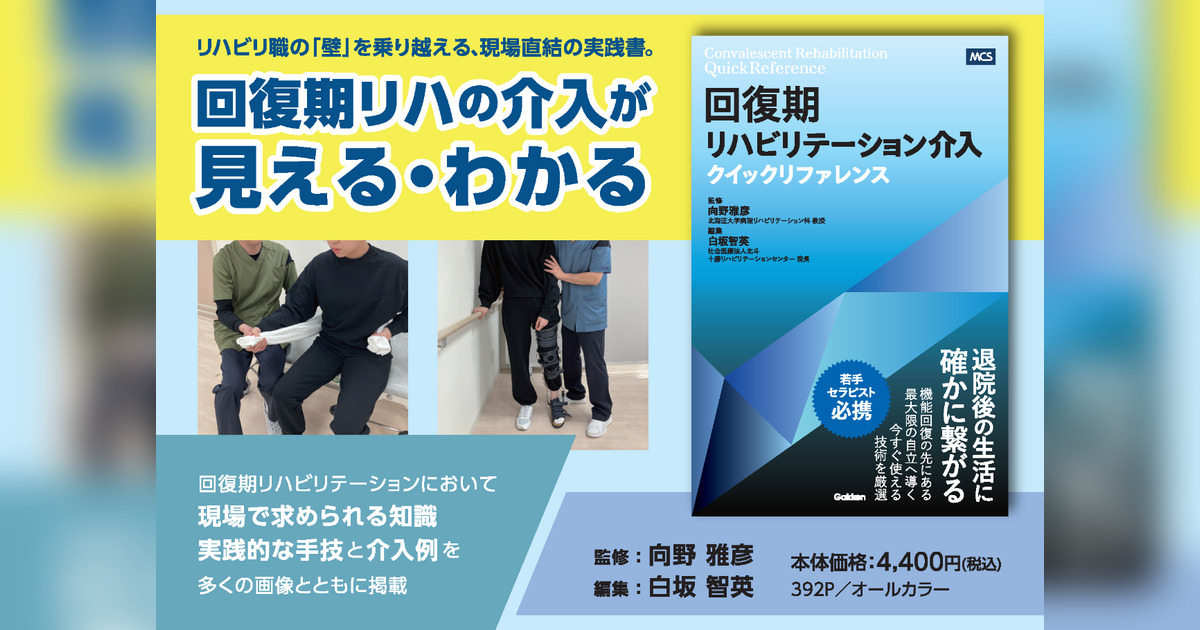 株式会社 学研ホールディングス(東京・品川/代表取締役社長:宮原博昭)のグループ会社、メディカル・ケア・サービス株式会社(埼玉・さいたま市/代表取締役社長:山本教雄)は、2025年6月19日(木)に、『回復期リハビリテーション介入クイックリファレンス』を発売いたしました。