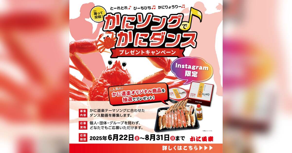 株式会社かに道楽はかに道楽のテーマソングに合わせダンス動画を募集致します。