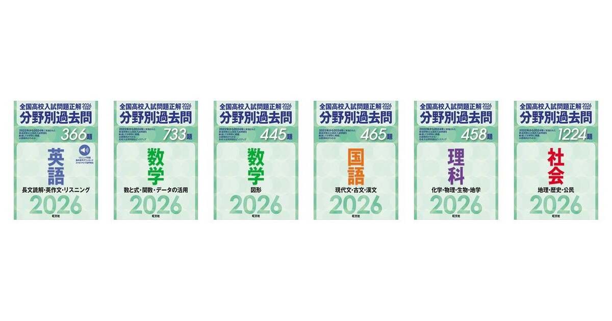 教育出版の株式会社旺文社(東京都新宿区、代表取締役社長 粂川 秀樹)は、「2026年受験用 全国高校入試問題正解 分野別過去問」シリーズ計6冊(英語、数学2冊、国語、理科、社会)を6月19日(木)に刊行いたします。