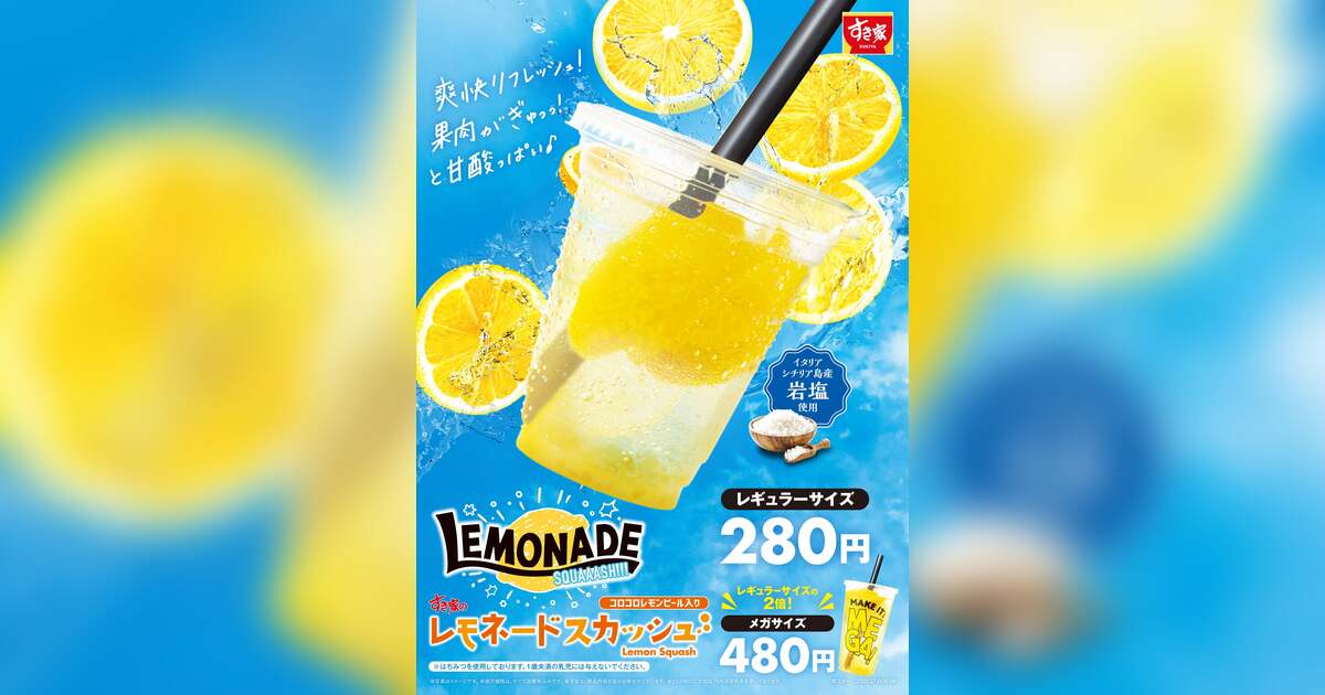 【すき家】キレのある爽やかな味わい!すき家の夏の定番「レモネードスカッシュ」販売!