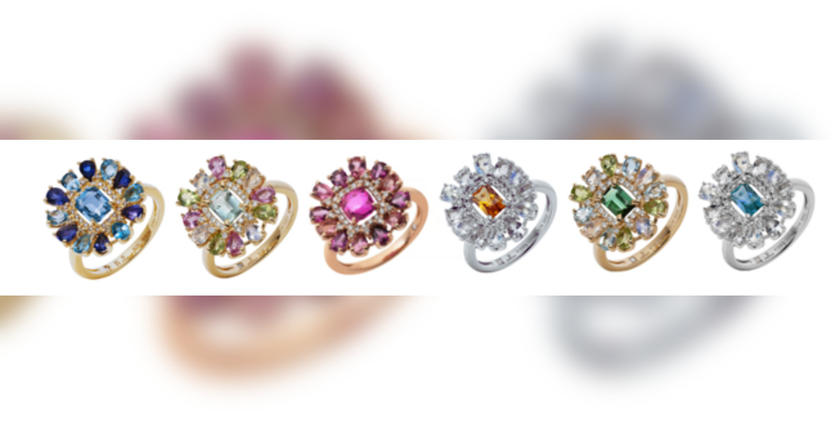 花が咲き誇る瞬間を切り取った、立体的なデザインが特徴のアイコニックコレクション『Blooming』。花びら一枚一枚に高低差をつけることで、光を受けたときにまばゆい煌めきを放ちます。中央にはブランドのシンボルであるスクエアカットのカラーストーン。周囲をダイヤモンドが繊細に取り囲みます。まるで指先で花が開き、喜びが広がるような、心まで華やぐリングです。新たに4色が加わり、全6色がラインアップ。