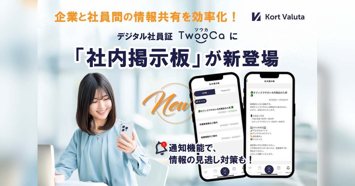 株式会社Kort Valuta、デジタル社員証TwooCa(ツウカ)に新サービス「社内掲示板」リリース