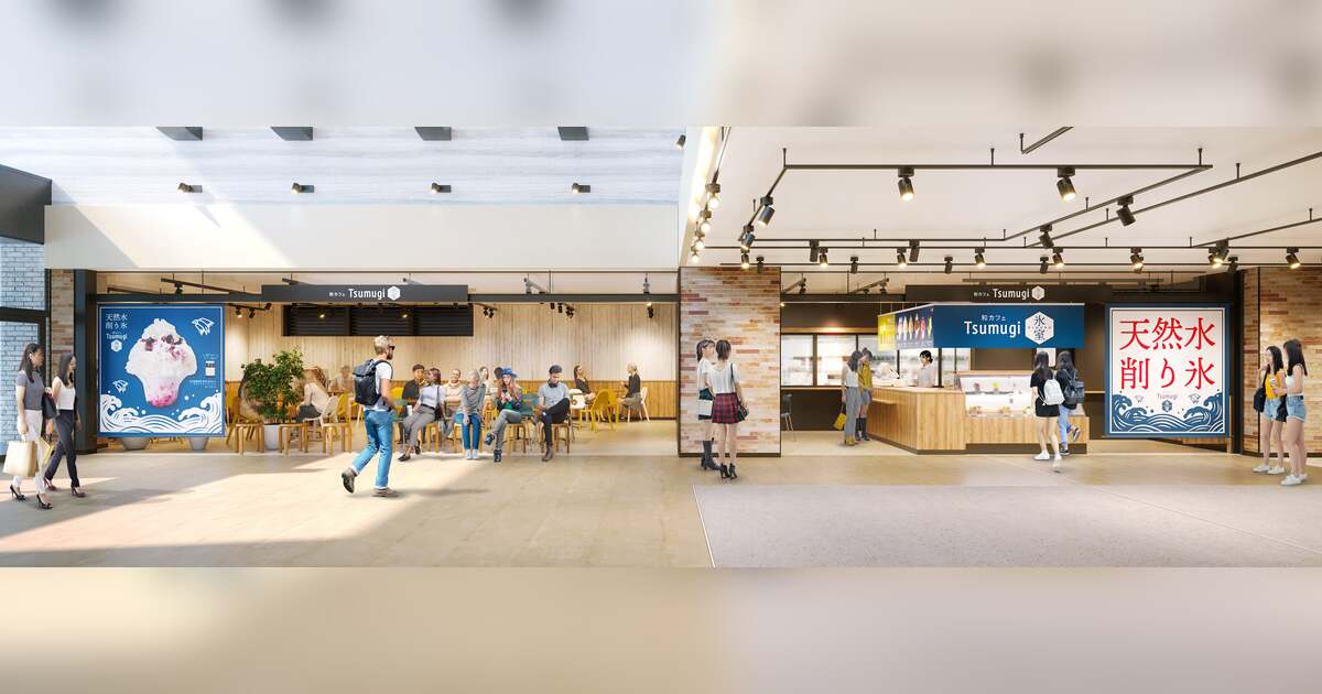 『和カフェ Tsumugi 氷室 南町田グランベリーパーク店』は、プロントコーポレーションが展開する『和カフェTsumugi』の看板商品「天然水の削り氷」を販売するポップアップストアです。「天然水の削り氷」の魅力をより多くのお客様に知っていただくため、2022年に夏季限定でオープンしました。以来、毎年夏季限定で出店を続け、ご好評いただきながら今年で4年目を迎えます。今年は昨年と出店エリアを変更し、より広々とした空間でお客様をお迎えいたします。