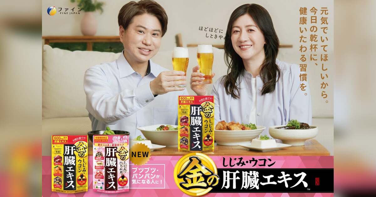 健康食品及び医薬品などを製造・販売する株式会社ファイン(本社:大阪市淀川区、代表取締役:佐々木 信綱)は、 お付き合いや毎日の元気をサポートする「金の肝臓エキス」 シリーズのイメージキャラクターとして、 お笑いコンビ 2丁拳銃の川谷修士さんと、放送作家の野々村友紀子さん夫妻を起用いたします。 2025年6月20日(金)から、お二人が共演したTVerCMの放映を開始。6月27日(金)からは商品や修士・野々村夫妻デザインのQUOカードPayなどが抽選で当たるSNSキャンペーンを開催します。