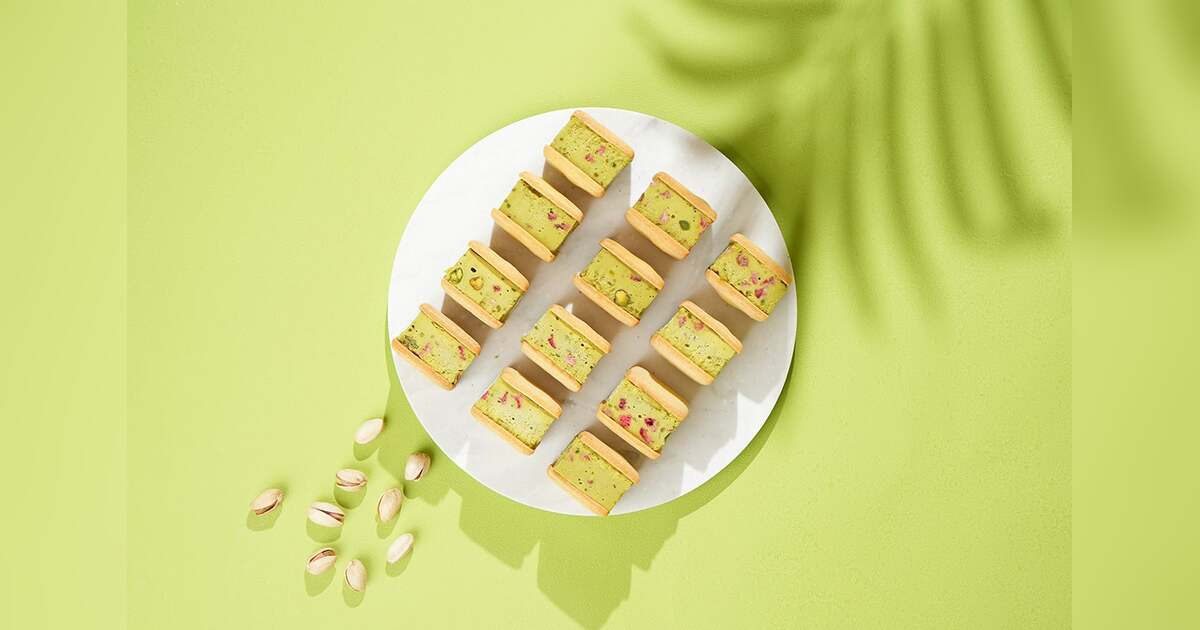 「ナッツの女王」ピスタチオをふんだんに使ったカッサータを、香ばしいサブレでサンドしました。