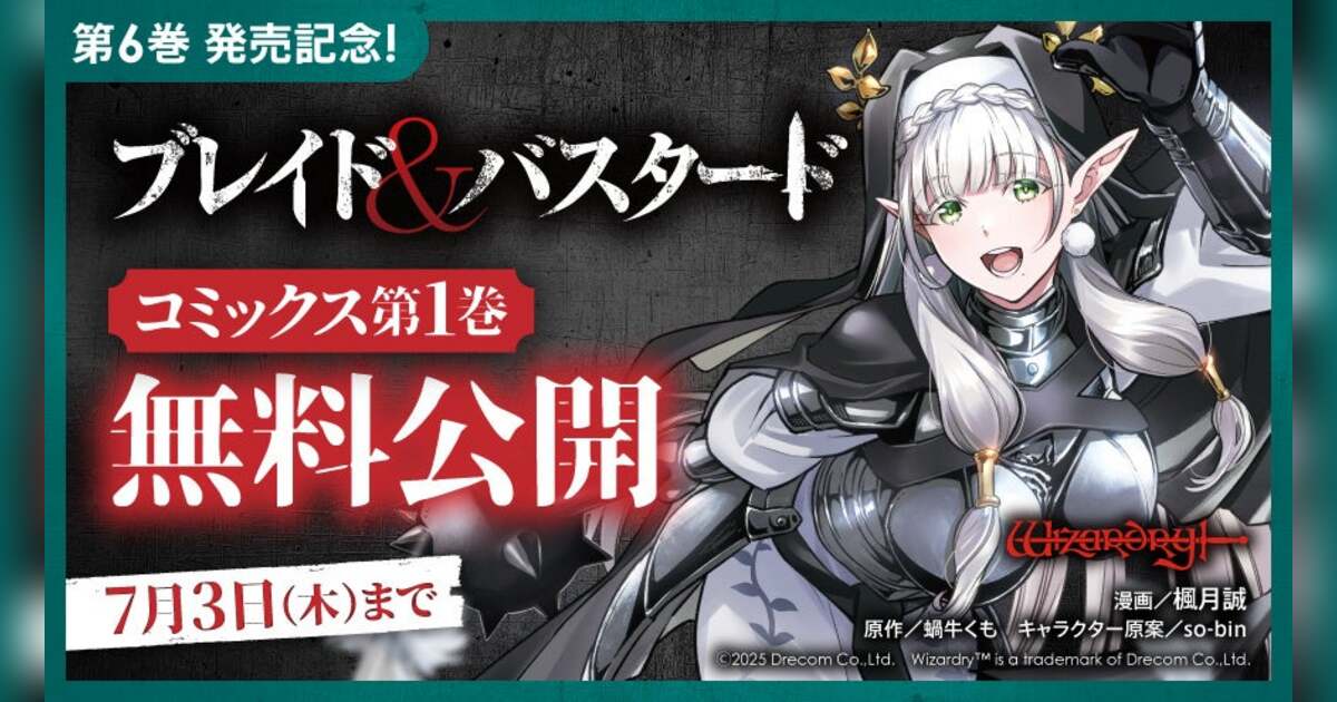 株式会社ドリコム(本社:東京都品川区、代表取締役社長:内藤裕紀)は、名作RPG「Wizardry」の世界観で繰り広げられるダークファンタジー『ブレイド&バスタード』のコミックス第6巻発売を記念し、第1巻の無料公開が決定したことをお知らせいたします。7月3日までの期間限定で、1巻分の内容をDREコミックス公式サイト・各電子ストアにてご覧いただけます。