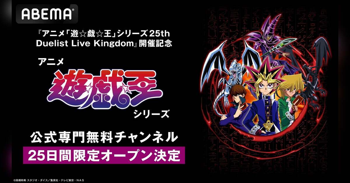新しい未来のテレビ「ABEMA」は、スペシャルイベント『アニメ「遊☆戯☆王」シリーズ25th Duelist Live Kingdom』の開催を記念し、2025年7月1日(火)より、アニメ「遊☆戯☆王」シリーズ公式専門無料チャンネルを期間限定で新規OPENいたします。