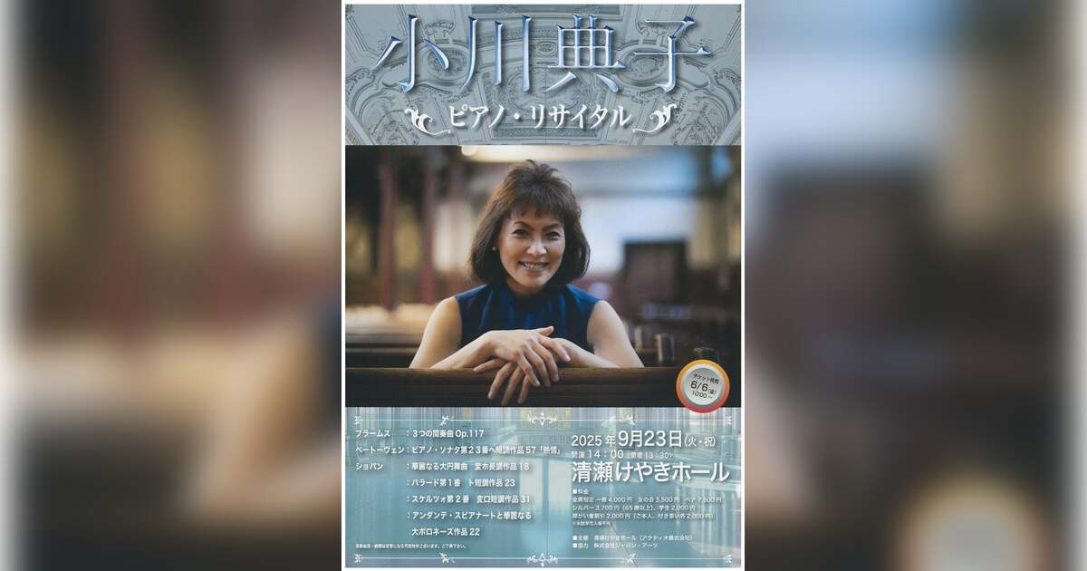 清瀬けやきホール(アクティオ株式会社)主催、『小川典子ピアノ・リサイタル』が2025年9月23日 (火・祝)に清瀬けやきホール 大ホール(東京都清瀬市元町1-6-6)にて開催されます。