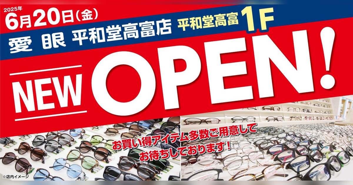 メガネ・補聴器を販売する「メガネの愛眼」「Aigan」 ( https://www.aigan.co.jp/ )を運営する愛眼株式会社(本社:大阪市天王寺区、代表取締役社長:佐々 昌俊)は、岐阜県山県市の商業施設「平和堂 高富店」の1Fに「メガネの愛眼 平和堂高富店」を2025年6月20日(金)にオープンしましたことをお知らせいたします。