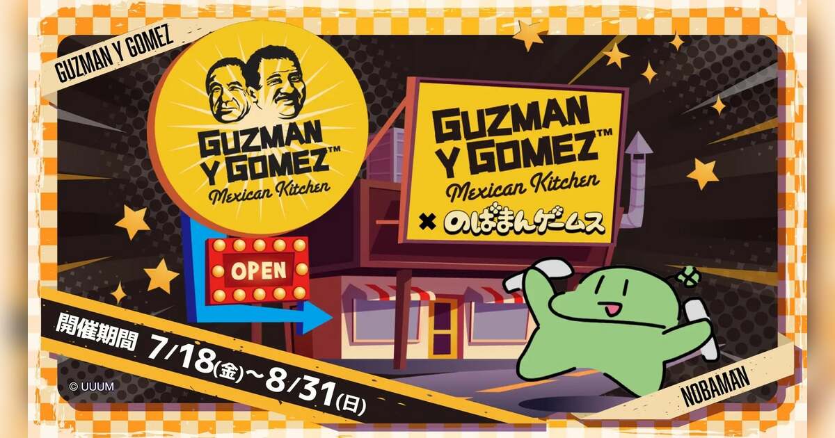 株式会社トランジットメキシカンフードオペレーション(本社:東京都渋谷区、代表取締役 亀山 里樹)が運営するファストカジュアルスタイルのメキシカンキッチン「Guzman y Gomez(グズマン イー ゴメズ、以下GYG)」は、登録者数約75万人のゲーム実況クリエイター「のばまんゲームス」とのコラボレーション企画を2025年7月18日(金)より実施いたします。