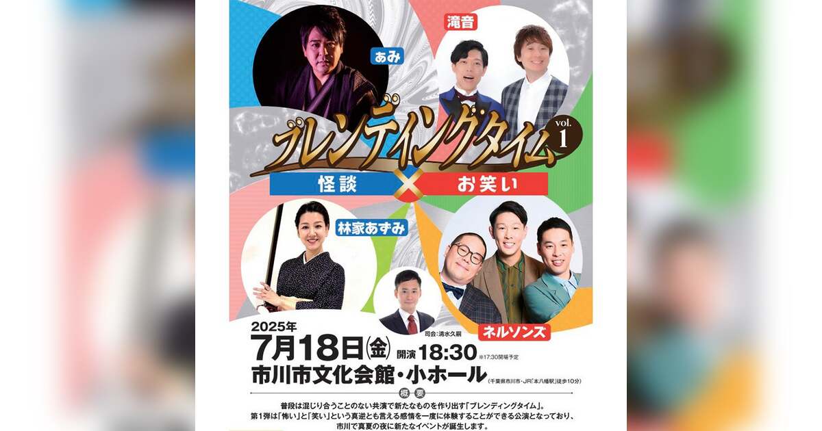フリック株式会社主催、『ブレンディングタイムvol.1 怪談×お笑い』が2025年7月18日 (金)に市川市文化会館 小ホール(千葉県 市川市 大和田 1丁目1番5号)にて開催されます。