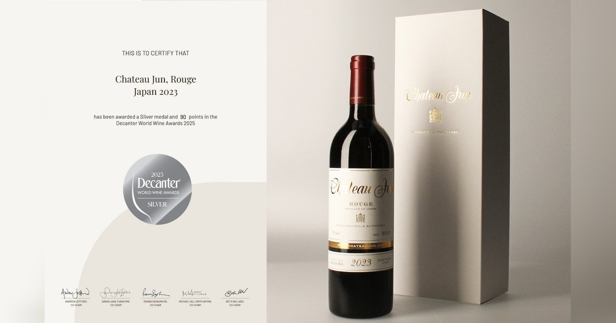株式会社ジュン(本社:東京都港区/ 代表取締役社長:佐々木進)の直営ワイナリーである、Chateau Jun(シャトージュン)は、Decanter World Wine Awards2025 において、「ROUGE2023」は、厳正な審査の結果、銀賞を受賞いたしました。