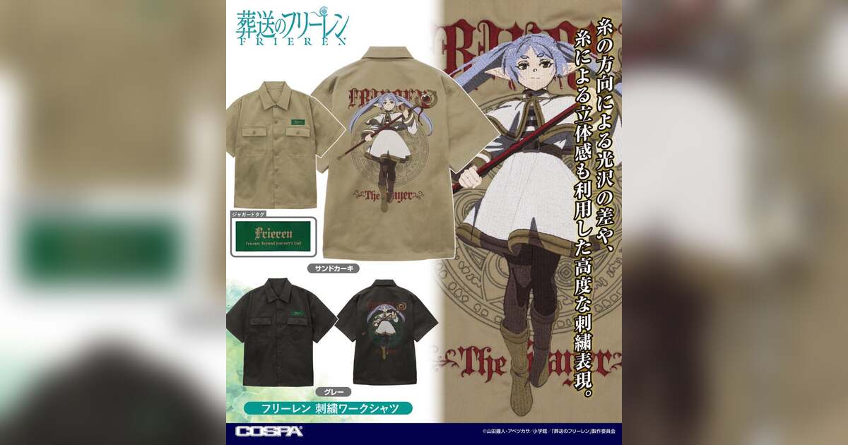 TVアニメ『葬送のフリーレン』より、10万ステッチ以上の刺繍技術で「フリーレン」「フェルン」を再現した「刺繍ワークシャツ」がCOSPA(コスパ)から登場!