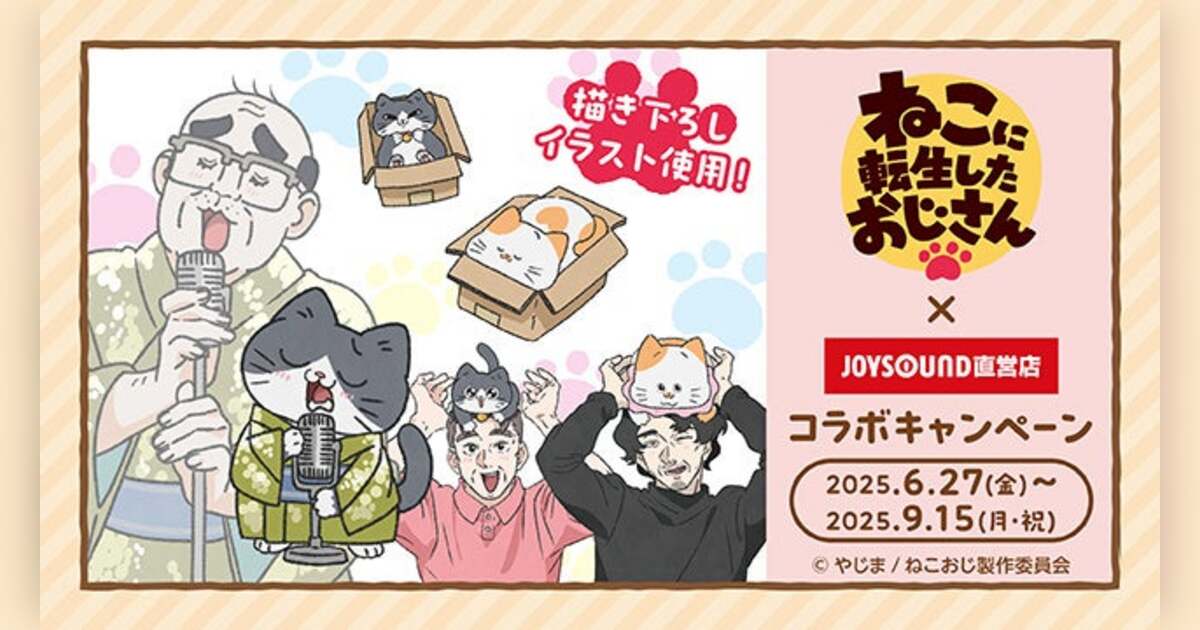 株式会社エクシングの子会社で、全国にカラオケ店舗・ネットカフェ店舗を展開する株式会社スタンダード(本社:東京都港区、代表取締役社長:小林克章)は、2025年6月27日(金)から2025年9月15日(月)までの期間中、「ねこに転生したおじさん×JOYSOUND直営店コラボキャンペーン」と題し、JOYSOUND池袋西口公園前店(東京)・JOYSOUNDなんば戎橋店(大阪)にカラオケコラボルームをオープン!また、JOYSOUND直営店30店舗にて、オリジナルノベルティ付きコラボドリンクを展開します。当コラボでは、プンちゃん(おじさん)がカラオケを楽しむ姿を含む、オリジナルの描き下ろしイラストを使用いたします!