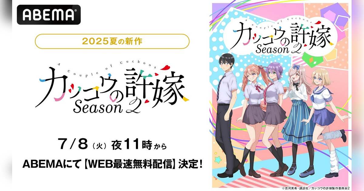 新しい未来のテレビ「ABEMA」は、新作夏アニメ『カッコウの許嫁Season2』を、2025年7月8日(火)から毎週火曜日夜11時よりWEB最速無料配信いたします。