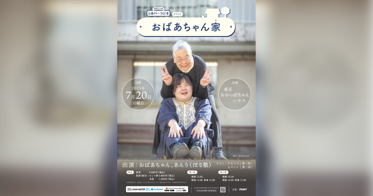 吉本興業グループの株式会社FANYは、FANYアプリで配信中のポッドキャスト番組「おばあちゃんのシルバーラジオ」の初のリアルイベント「おばあちゃん家」を、2025年7月20日(日)に東京おかっぱちゃんハウス(東京都練馬区)にて開催することをお知らせします。