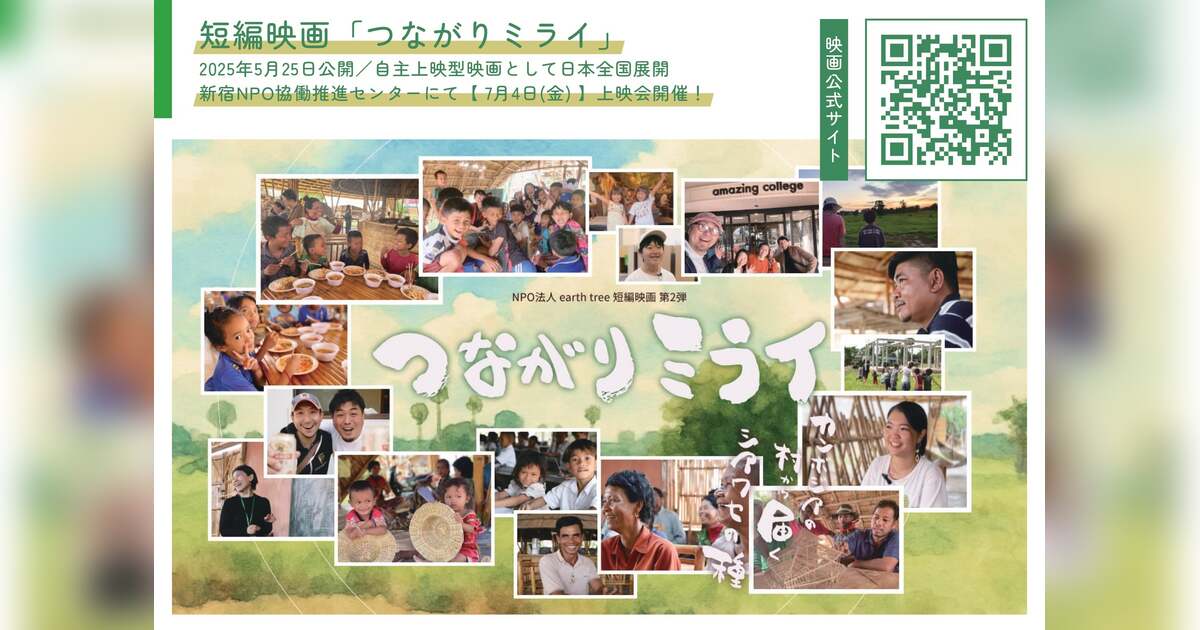 NPO法人earth treeの短編映画第2弾となる「『つながりミライ』~カンボジアから届く、しあわせの種。~」の上映会を7月4日(金)、新宿区立新宿NPO協働推進センターで開催します!