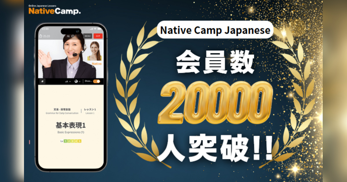 株式会社ネイティブキャンプ(本社:東京都渋谷区、代表取締役社長:谷川国洋)が提供するオンライン日本語会話サービス『Native Camp Japanese』は、このたび、会員数が20,000人を突破したことをお知らせいたします。