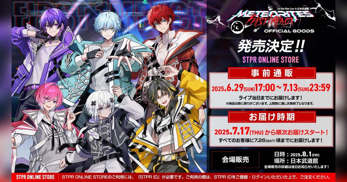 株式会社STPR(本社:東京都渋谷区、代表:柏原真人、以下「STPR」)は、弊社所属の2.5次元歌い手アイドルグループ「めておら – Meteorites -」(以下「めておら」)よる日本武道館での初ワンマンライブに向け、オフィシャルグッズのラインナップを発表、STPR TICKET最終先行受付を2025年6月22日(日)23:00に開始いたしました。