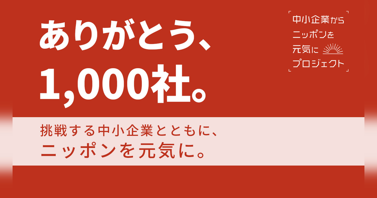 日本の経済を支える中小企業支援サービス事業を行う株式会社中小企業のチカラ(本社:東京都渋谷区、代表取締役社長:山下 佳介、以下「中小企業のチカラ」)が運営する「中小企業からニッポンを元気にプロジェクト」( https://nippon-smes-project.com/ )は累計1,000社の中小企業に参画いただきました。